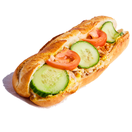 Ingredienser: Baguette, Kylling, Majones, Smør, Salat, Curry
