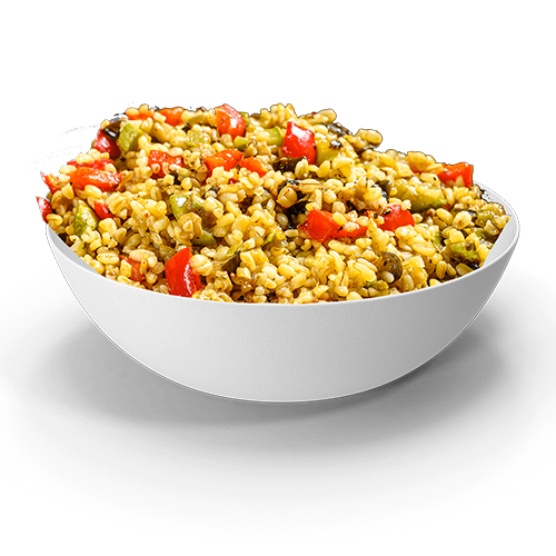Ingredienser: Bulgur (hvete) (35%), gulrot, sorte bønner, borlottibønner, rødløk, grønnkål, sellerirot, sesamolje, (soyaolje, sesamolje), sitronjuicekonsentrat, quinoa (4%), soyasaus (vann, soyabønner, hvete, salt), hvitløk, ingefær, aprikos, antioksidant (svoveldioksid).